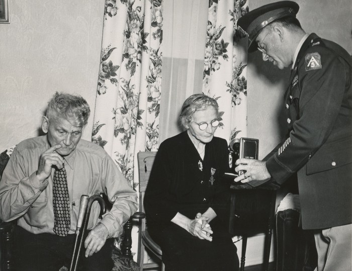 1949_10-20_posthumous receipt of Reuben Steger medals_John and Caroline Steger 1